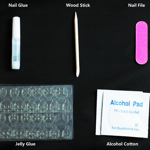 1 *A Pack of Nail Knit- Jelly glue, Alcohol cotton, Nail file, Wood stick.